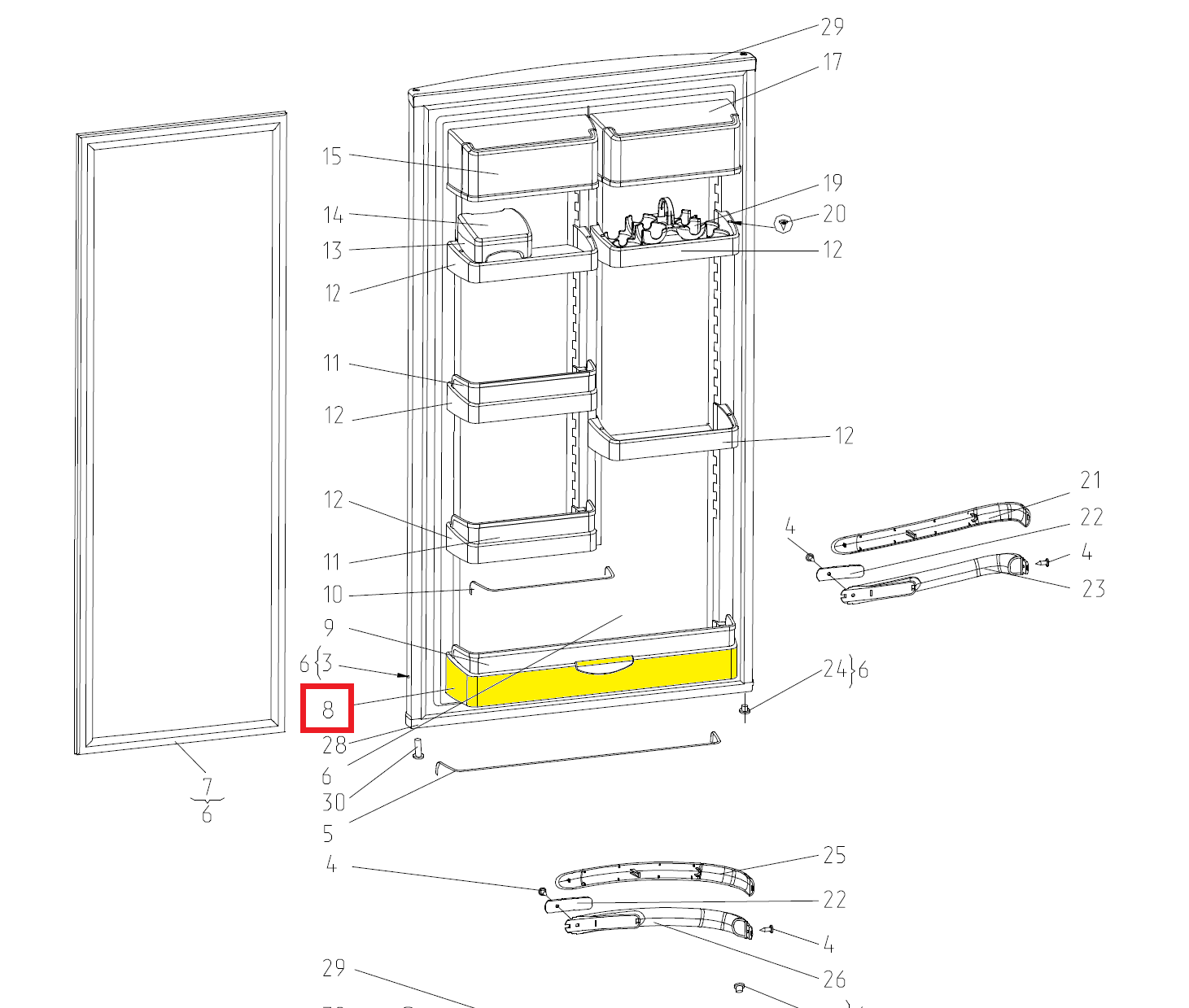 Šaldytuvo durų lentynėlė ATLANT, 48,6x10x7cm, 301.54-3.1.058-02,488х100х70 мм.