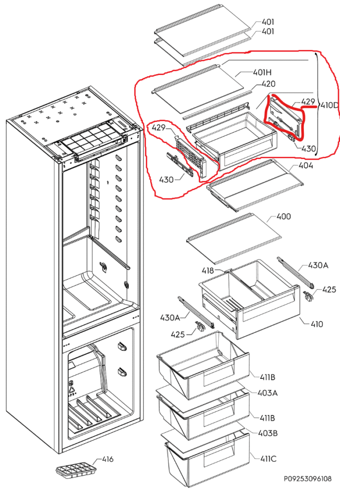 Šaldytuvo ELECTROLUX / AEG stalčius daržovių stalčius komplekte,orig.