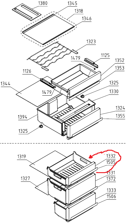 Šaldytuvo GORENJE, PANASONIC šaldiklio stalčius (viršutinis,orig.