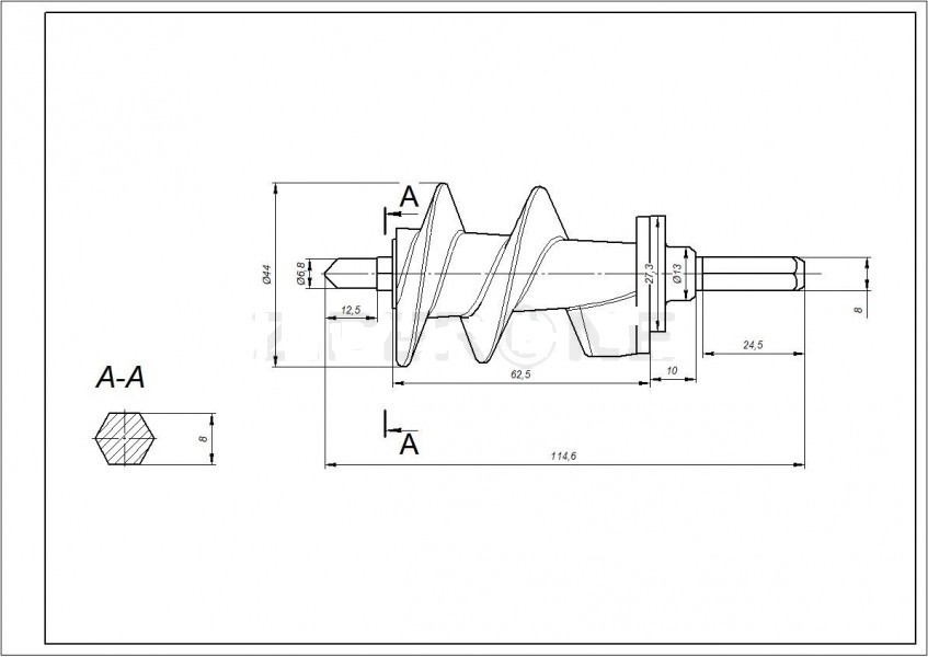 Sraigtas mėsmalei MOULINEX, TEFAL,115mm ilgis,orig.